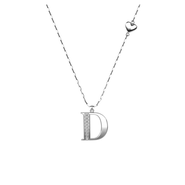 Ankerkette mit einem Buchstaben "D"-Anhänger und einem kleinen Herz, aus 925 Silber, Breite ca. 1 mm, Länge 42 + 3 cm