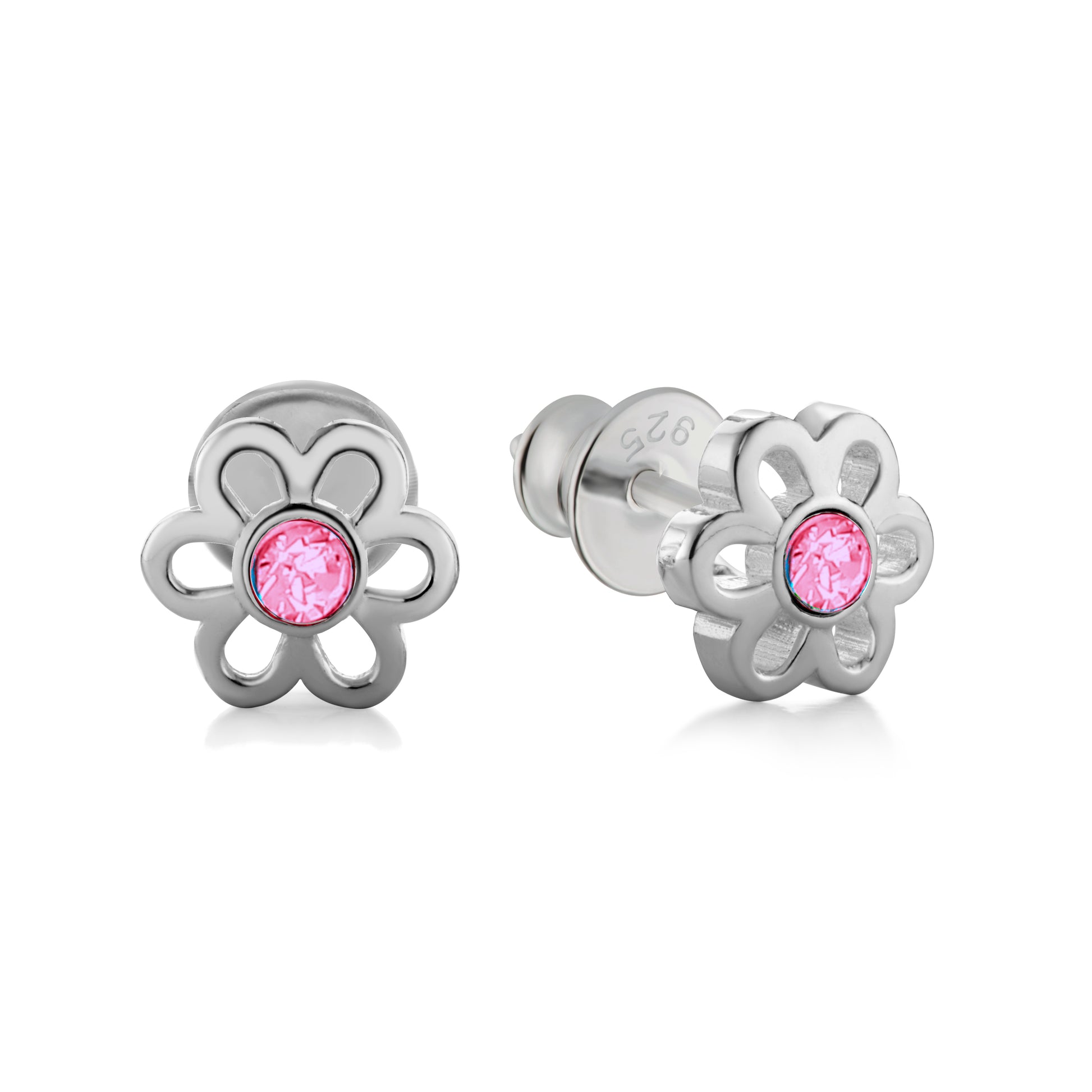 Ein Paar Kinderohrringe Blumen mit pinken Zirkonia, aus 925 Silber, 6 mm, Anlaufgeschützt