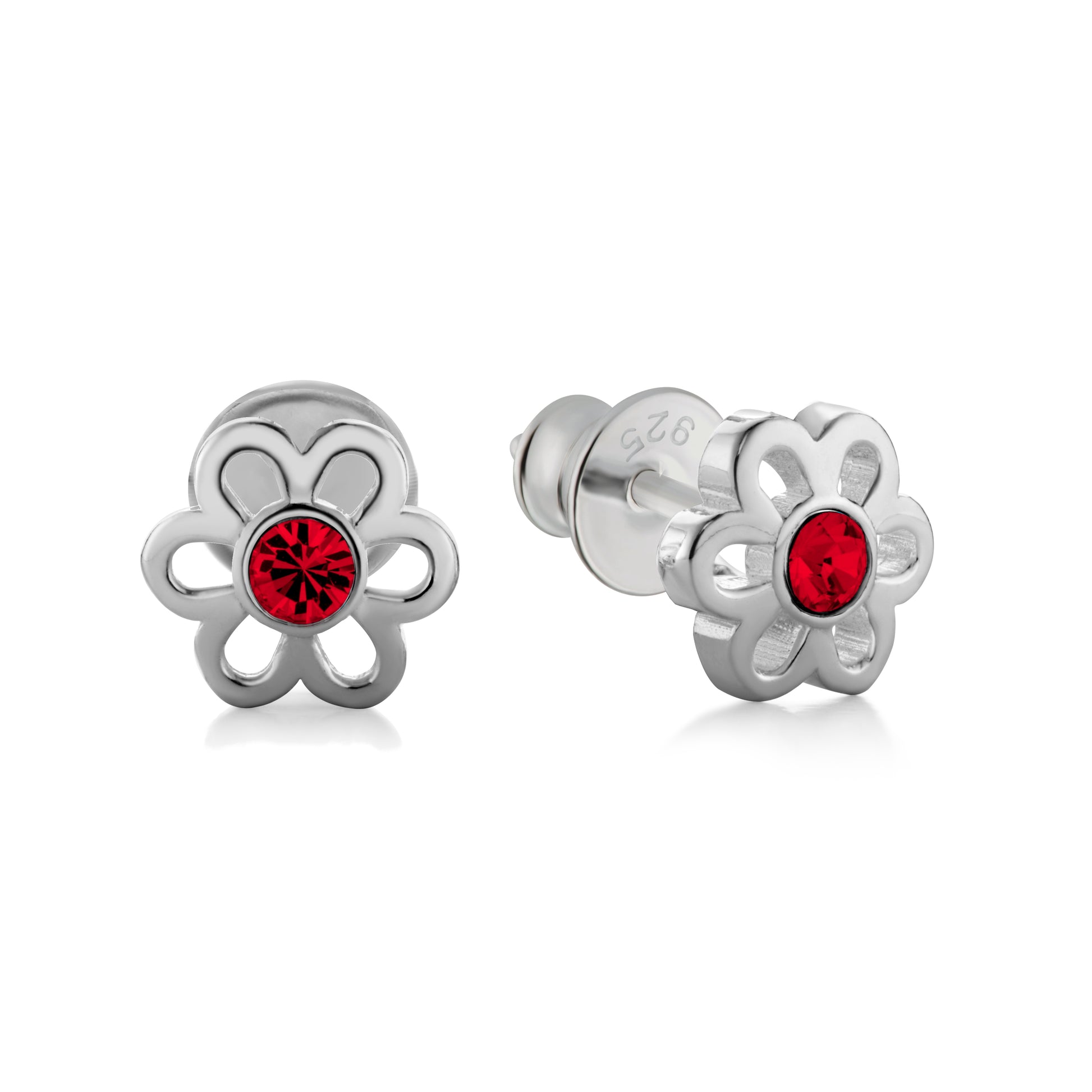 Ein Paar Kinderohrringe Blumen mit roten Zirkonia, aus 925 Silber, 6 mm, Anlaufgeschützt