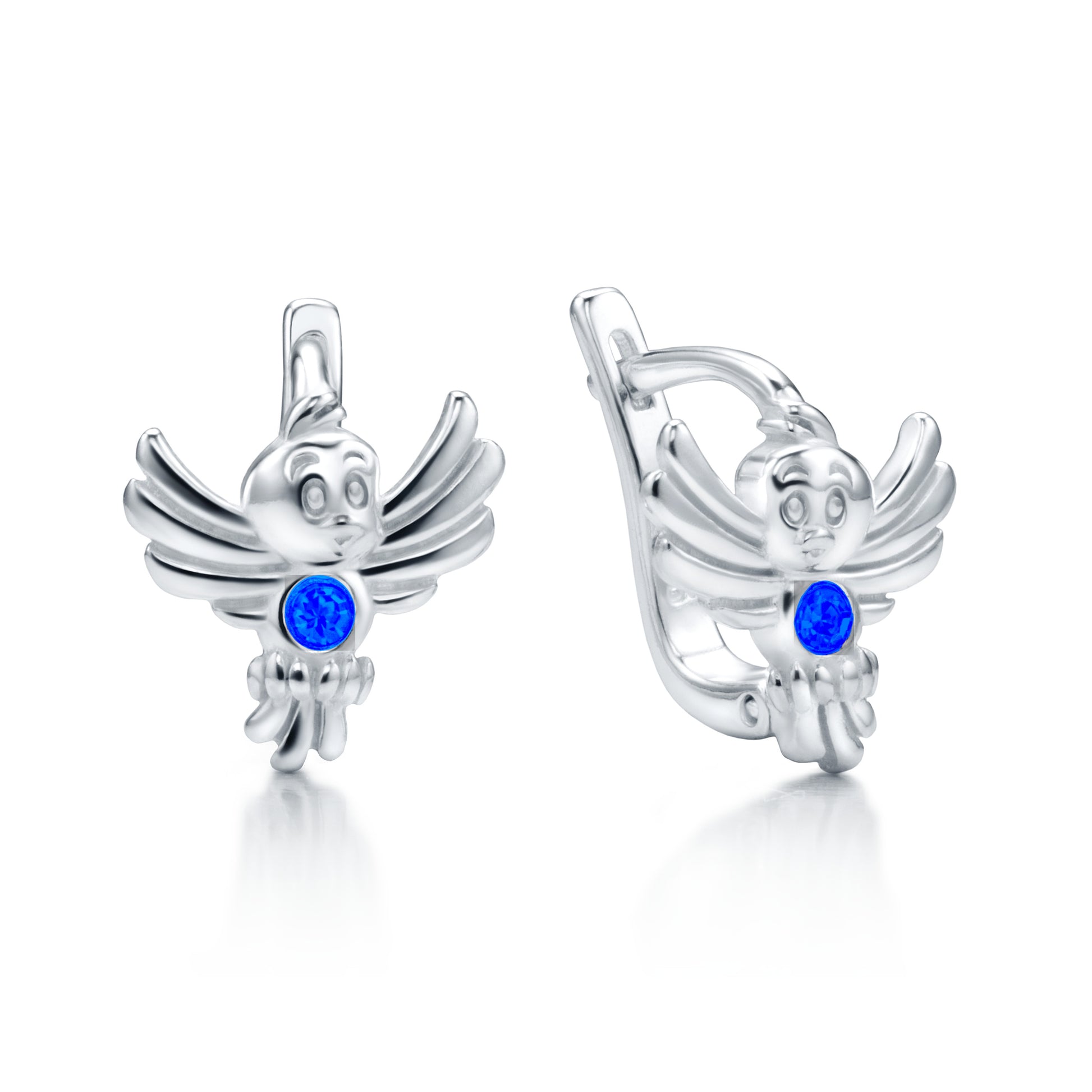 Ein Paar Kinderohrringe Vogel mit blauen Zirkonia, 10 mm x 10 mm, aus 925 Silber, Anlaufgeschützt