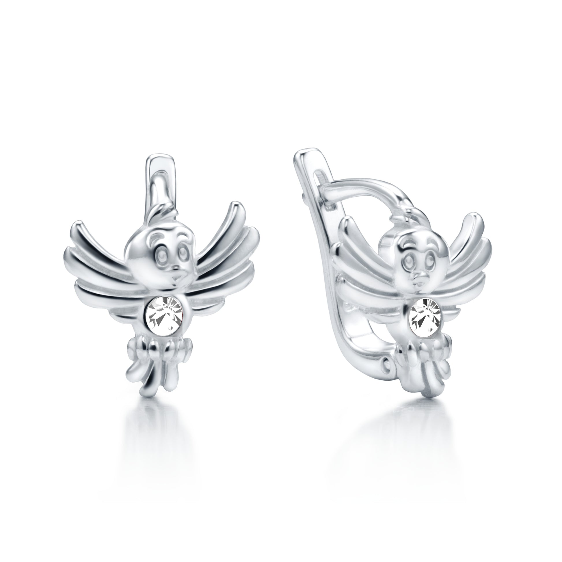 Ein Paar Kinderohrringe Vogel mit klaren Zirkonia, 10 mm x 10 mm, aus 925 Silber, Anlaufgeschützt