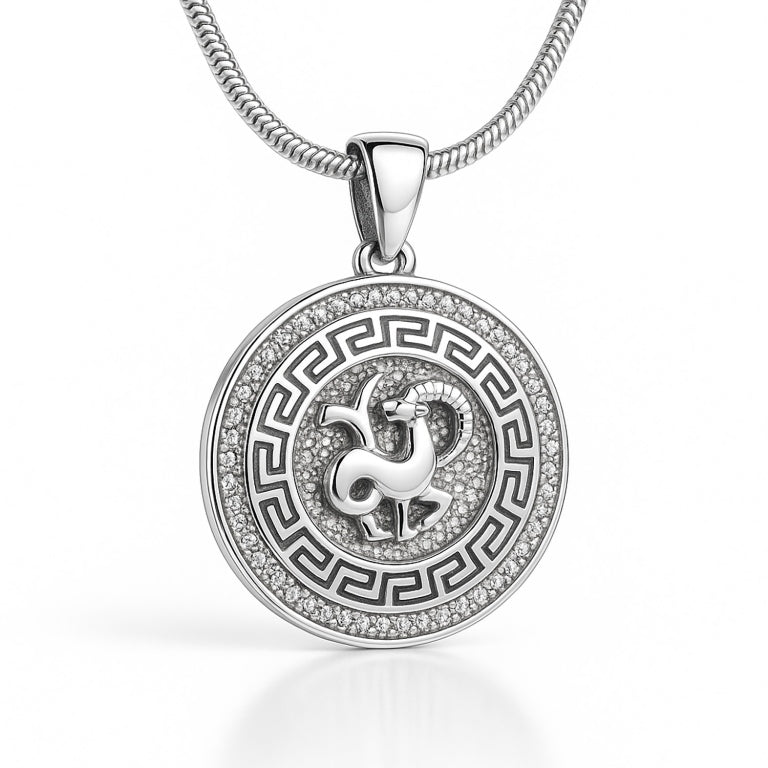 Ein Sternzeichenanhänger Steinbock, aus 925 Silber, Anlaufgeschützt, Durchmesser ca. (ohne Kette)