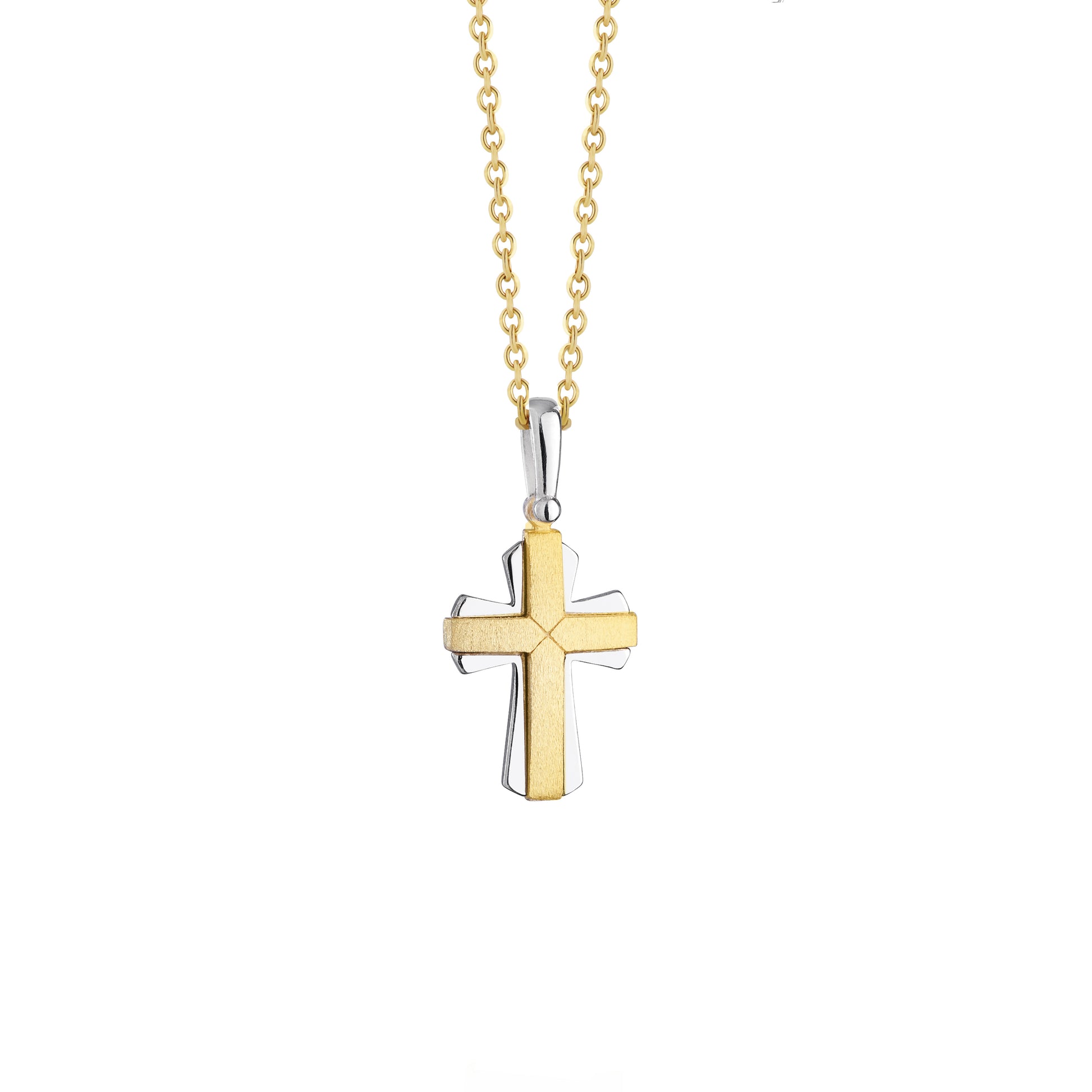 Ein zweifarbiger Kreuzanhänger aus 333 Gold, 21 mm x 15 mm (ohne Kette)