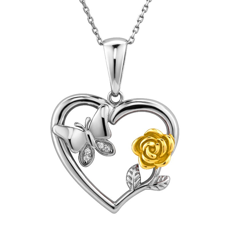 Herzanhänger mit einer Blume und einem Schmetterling, Größe 23 mm x 21 mm, Gewicht ca.  2 g