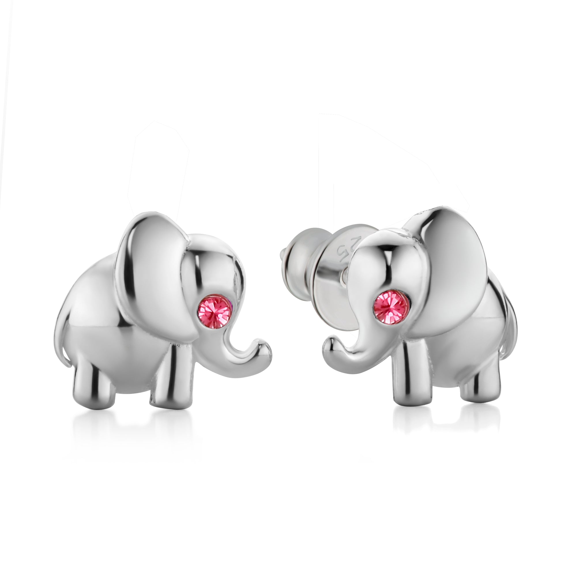 Kinderohrringe Elefant mit pinken Zirkonia, 12 mm x 9 mm, aus 925 Silber, Anlaufgeschützt