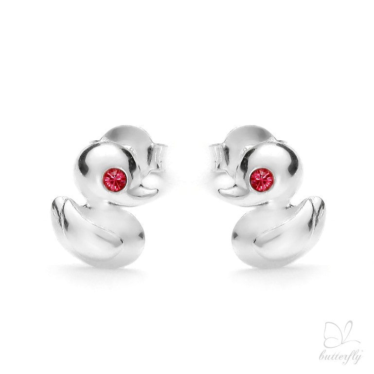 Kinderohrringe Ente mit rosa Zirkonia, aus 925 Silber, 9mm x 7mm, Anlaufgeschützt