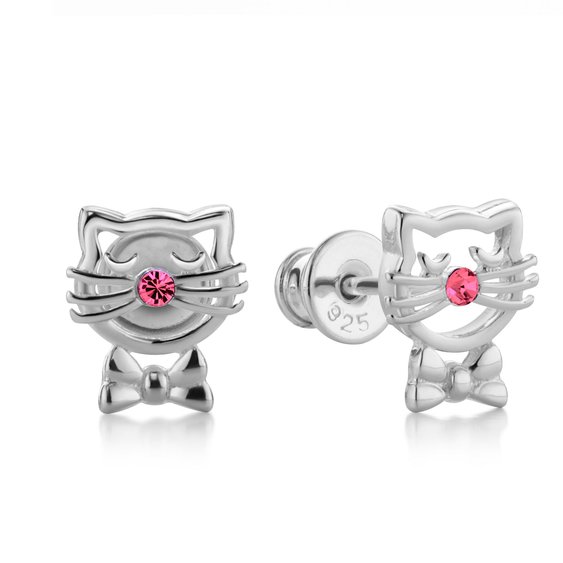 Kinderohrringe Katze mit rosa Zirkonia, aus 925 Silber, 9mm x 7mm, Anlaufgeschützt