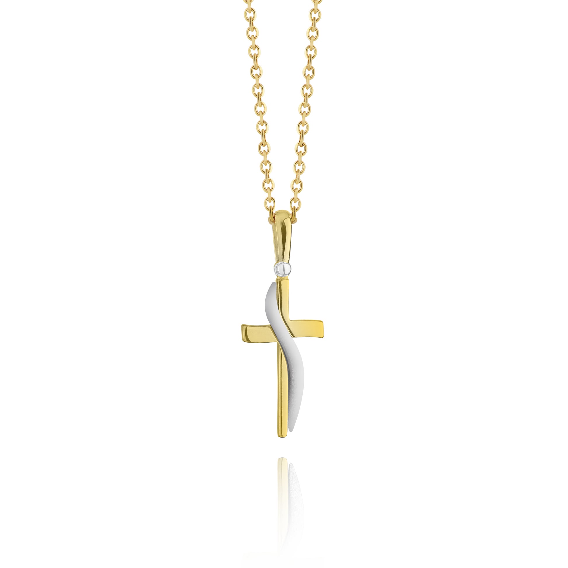 Ein zweifarbiger Kreuzanhänger aus 333 Gold, 20 mm x 8 mm (ohne Kette)