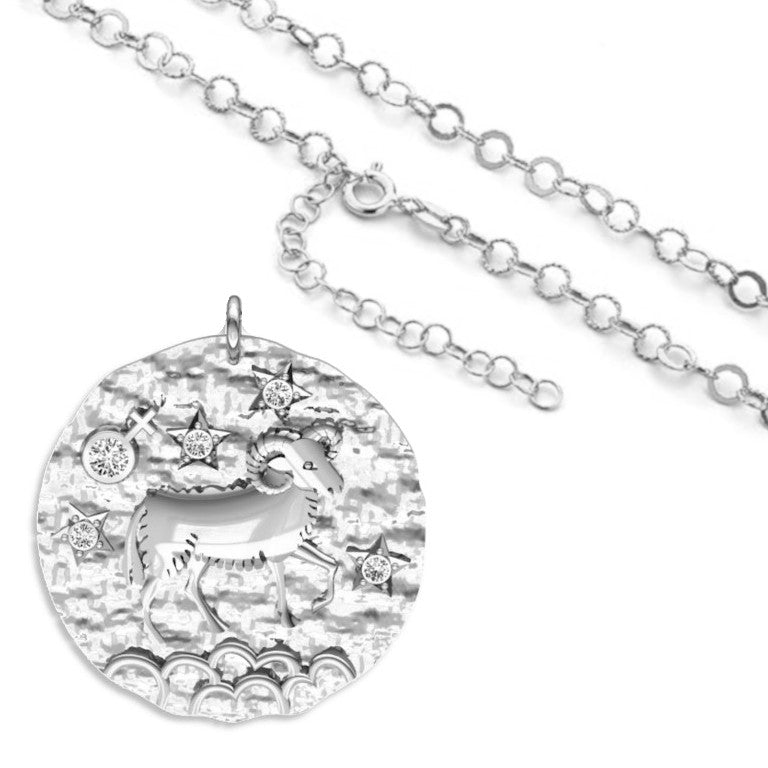 Rhodinierte breite Kette mit einem Sternzeichen Widder-Anhänger, aus 925 Silber, Breite ca 4,5 mm, Länge 42 + 8 cm