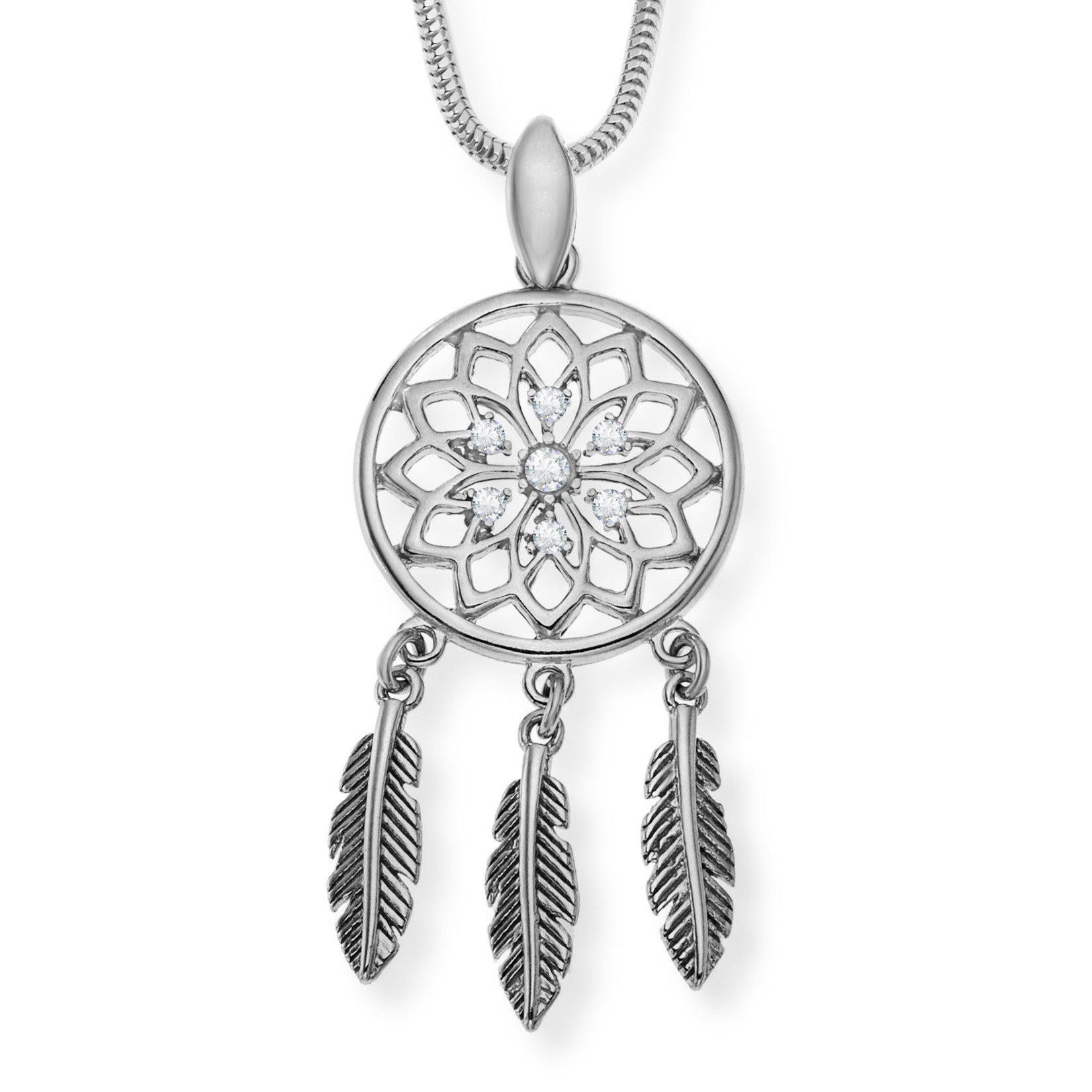 Traumfänger Anhänger aus 925 Silber, Anlaufgeschützt, Größe ohne Schlaufe: 30 mm x 15 mm (ohne Kette)