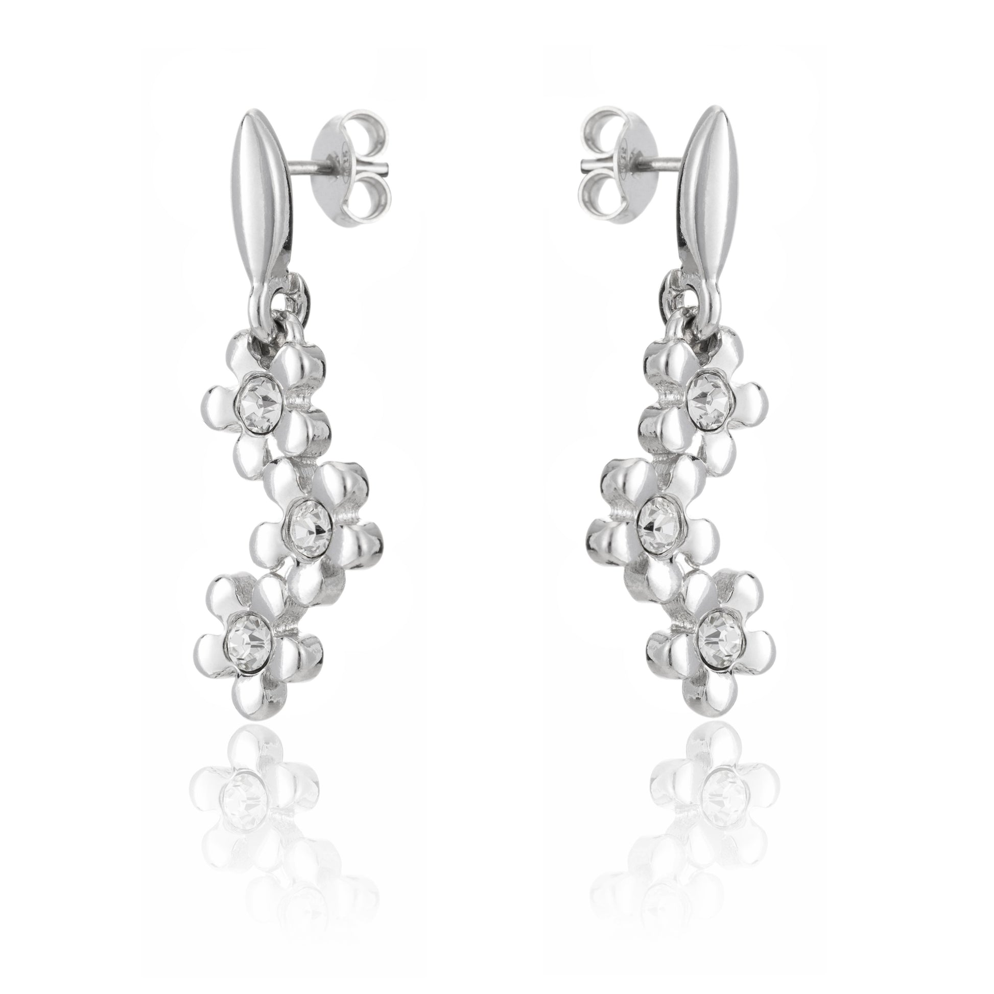 Silberohrringe mit Zirkonia, englischer Verschluss, rhodiniert, aus 925 Silber, 20 mm x 5 mm, Anlaufgeschützt