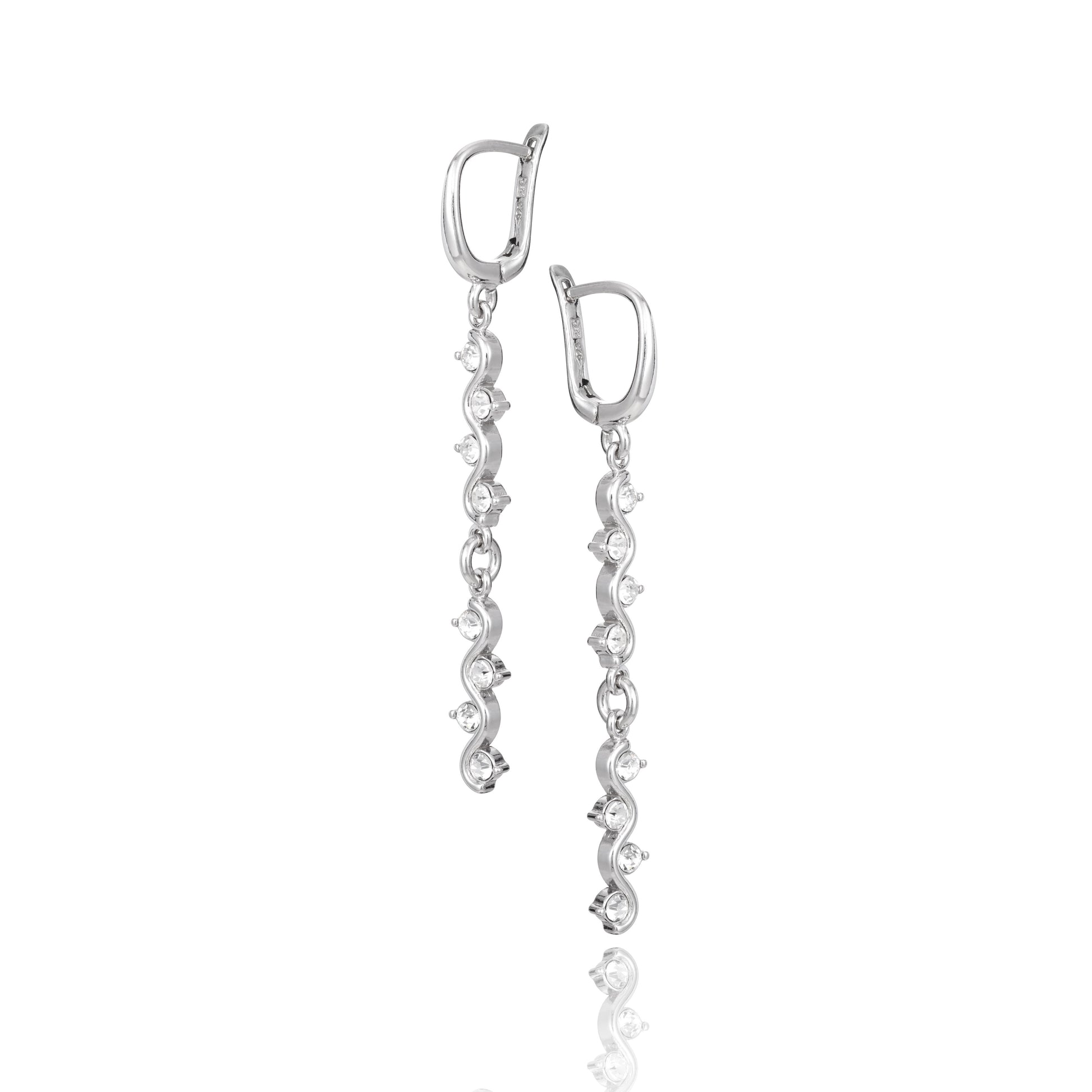 Silberohrringe mit Zirkonia, englischer Verschluss, rhodiniert, aus 925 Silber, 50 mm x 5 mm, Anlaufgeschützt