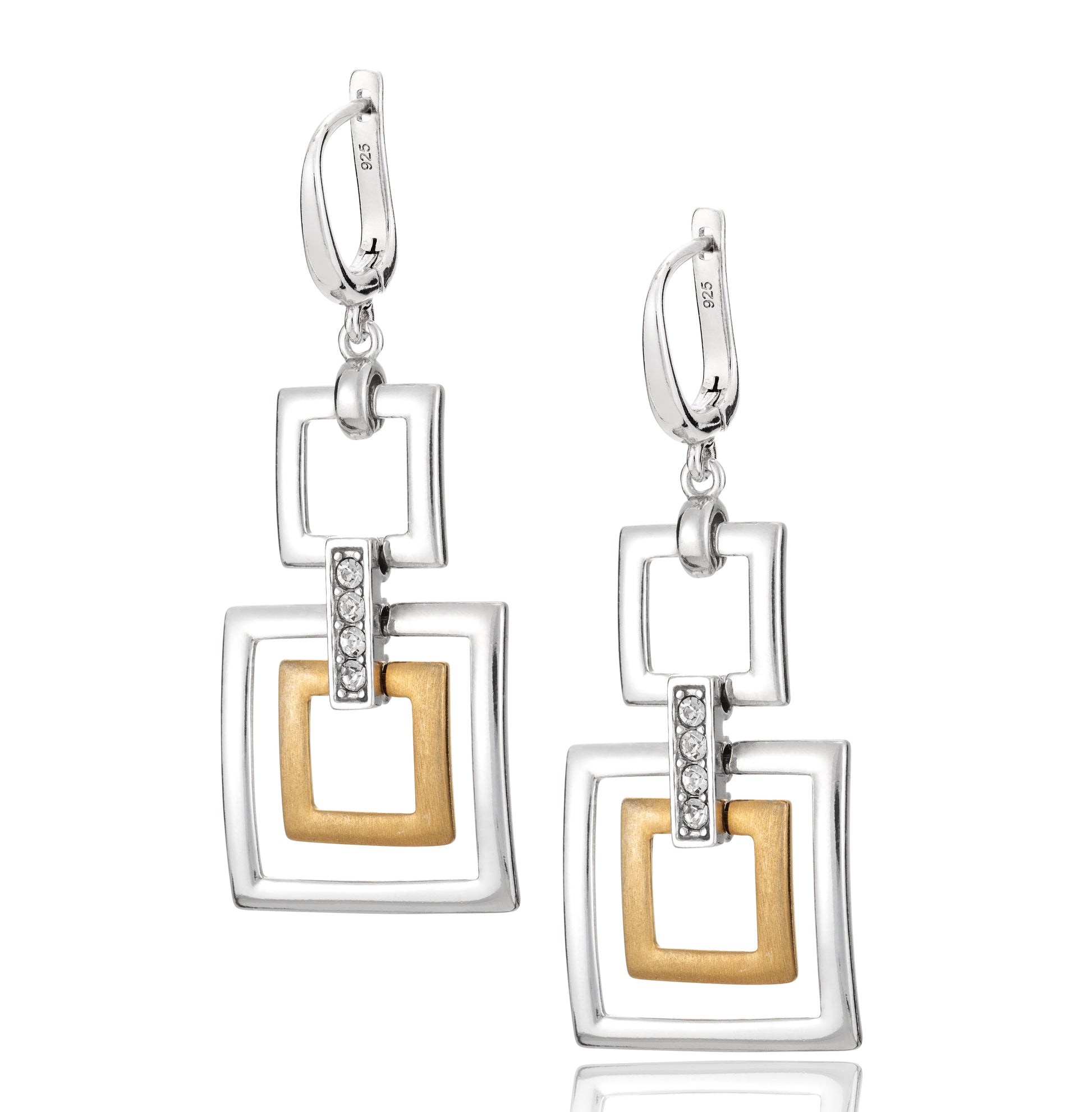 Teilvergoldete Silberohrringe mit Zirkonia, englischer Verschluss, 40 mm x 18 mm, aus 925 Silber, Anlaufgeschützt