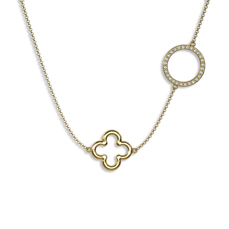 Vergoldete Ankerkette mit einem Klee und Ring Anhänger, aus 925 Silber, Anlaufgeschützt, Breite ca 0,6 mm, Länge 40+3 cm