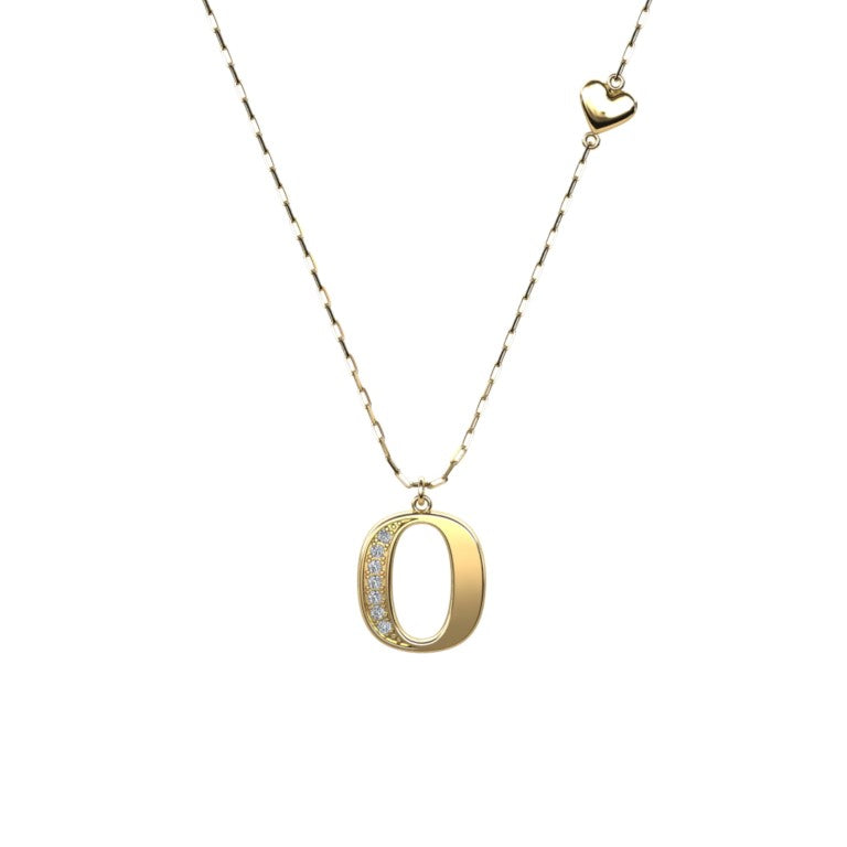 Vergoldete Ankerkette mit einem Buchstaben "O"-Anhänger und einem kleinen Herz, aus 925 Silber, Breite ca. 1 mm, Länge 42 + 3 cm