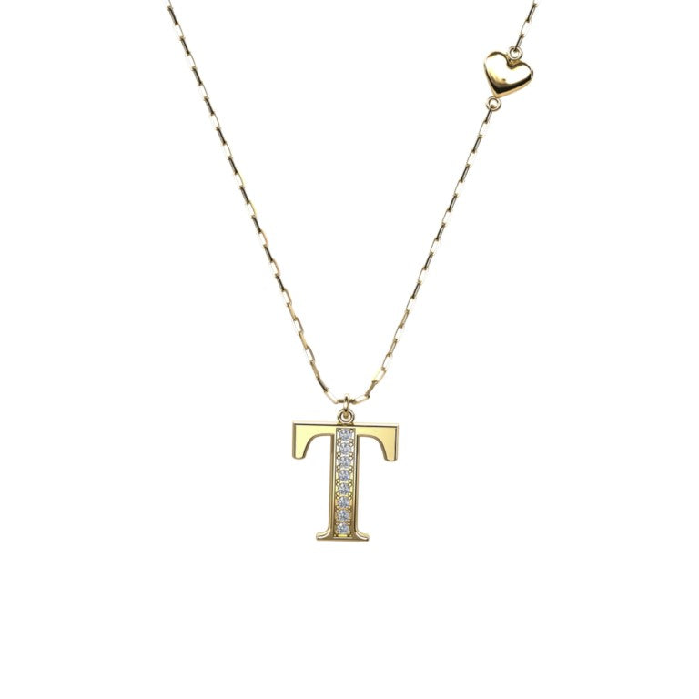 Vergoldete Ankerkette mit einem Buchstaben "T"-Anhänger und einem kleinen Herz, aus 925 Silber, Breite ca. 1 mm, Länge 42 + 3 cm