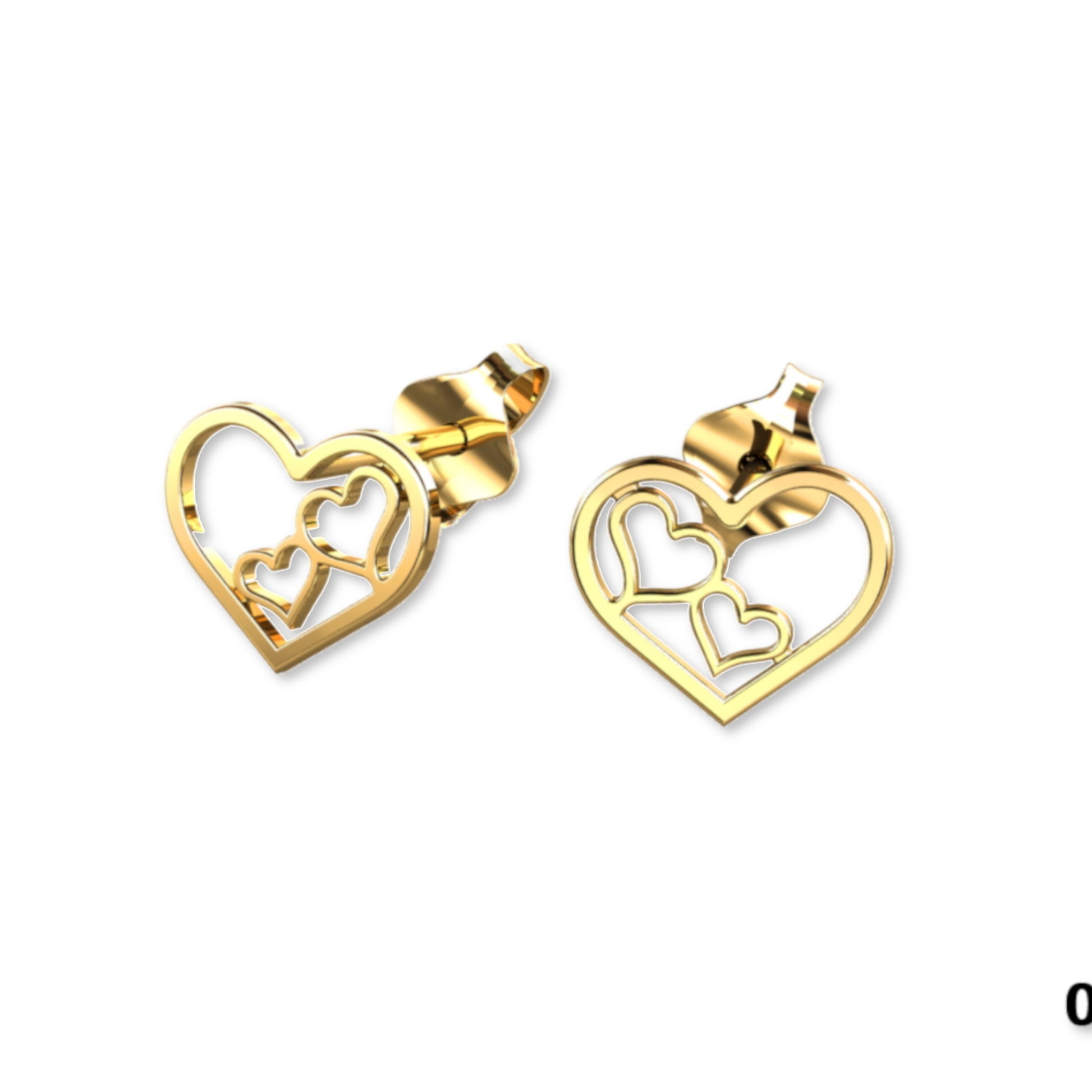 Vergoldete Silberohrringe Herzen, Stecker aus 925 Silber, Anlaufgeschützt