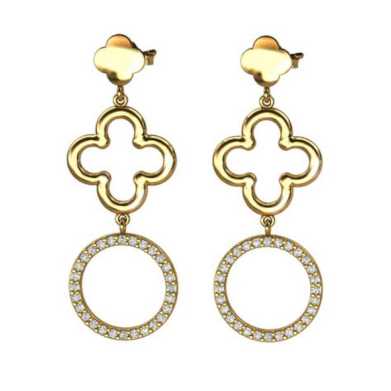 Vergoldete Silberohrringe mit Zirkonia, Kleeblatt, Stecker, aus 925 Silber, rhodiniert, Anlaufgeschützt